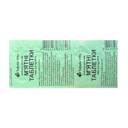 Склад: 1 табл. містить: ефірна олія мʼяти перцевої - 0,0025 г(g).