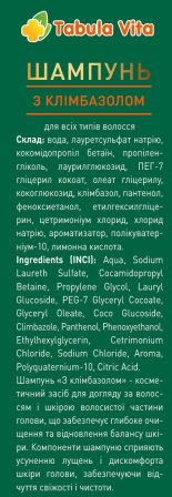 Шампунь «З клімбазолом» - косметичний засіб для догляду за волоссям і шкірою волосистої частини голови, що забезпечує глибоке очищення та відновлення балансу шкіри. Компоненти шампуню сприяють усуненню лущень і дискомфорту шкіри голови, забезпечуючи відчуття свіжості і чистоти.