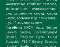 Склад: вода, лауретсульфат натрію, кокомідопропіл бетаїн, пропіленгліколь, лаурилглюкозид, ПЕГ-7 гліцерил кокоат, олеат гліцерилу, кокоглюкозид, клімбазол, пантенол, феноксиетанол, етилгексилгліцерин, цетримоніум хлорид, хлорид натрію, ароматизатор, полікуватерніум-10, лимонна кислота.