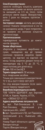 Спосіб використання: нанести необхідну кількість шампуню масажними рухами на вологе волосся та залишити на 3-5 хв. (min), потім ретельно змити водою. Використовувати 2 рази на тиждень протягом 1 місяця.