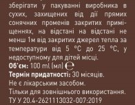 Умови зберігання: зберігати у пакуванні виробника в сухих, захищених від дії прямих сонячних променів закритих приміщеннях, на відстані на відстані не менш 1м від закритих джерел тепла за температури від 5 ℃ до 25 ℃, у недоступному для дітей місці.