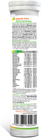Виробник Натхелс Сп. з.о.о. Країна виробник Польща Міжнародна назва (довідник ТМЦ) полівітаміни Первинна упаковка туба Форма випуску шипучі таблетки Кількість в упаковці 15 Спосіб застосування внутрішньо Взаємодія з їжею не має значення Температура зберігання не вище 25 С Умови продажу без рецепта -